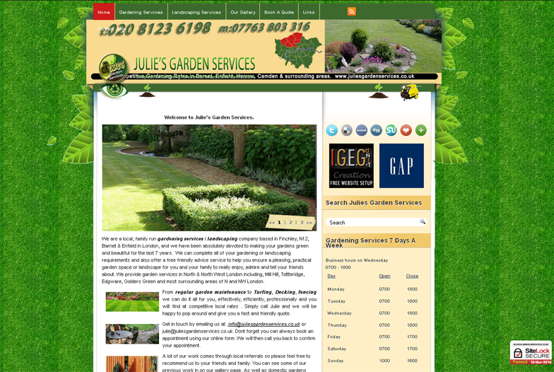 Client Testimonial"Michael and the rest of the Marketing team were able to translate our garden ideas and bring them into life for the design of our website. Their creativity and knowledge for website design and copywriting skills are excellent. Choosing IGEG Unit was one of the best business decisions we made and we would definitely use and recommend them if you need a website. " Live Web View @ www.juliesgardenservices.co.uk