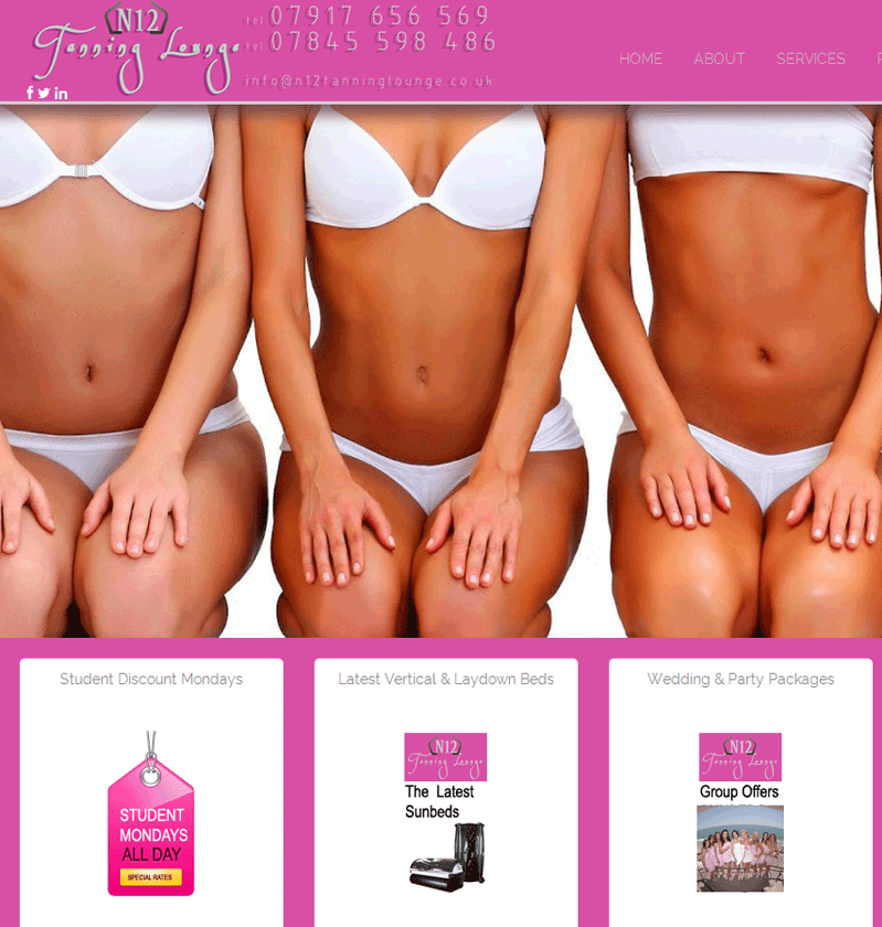 Tanning Salon, Beautician & Personal TrainersSun Tanning Salon in North Finchley, London required web prescence appealing to phone & tablet users and desktop users.  Location - London, United KingdomPackage Result Delivery: 18 Days- Strategy