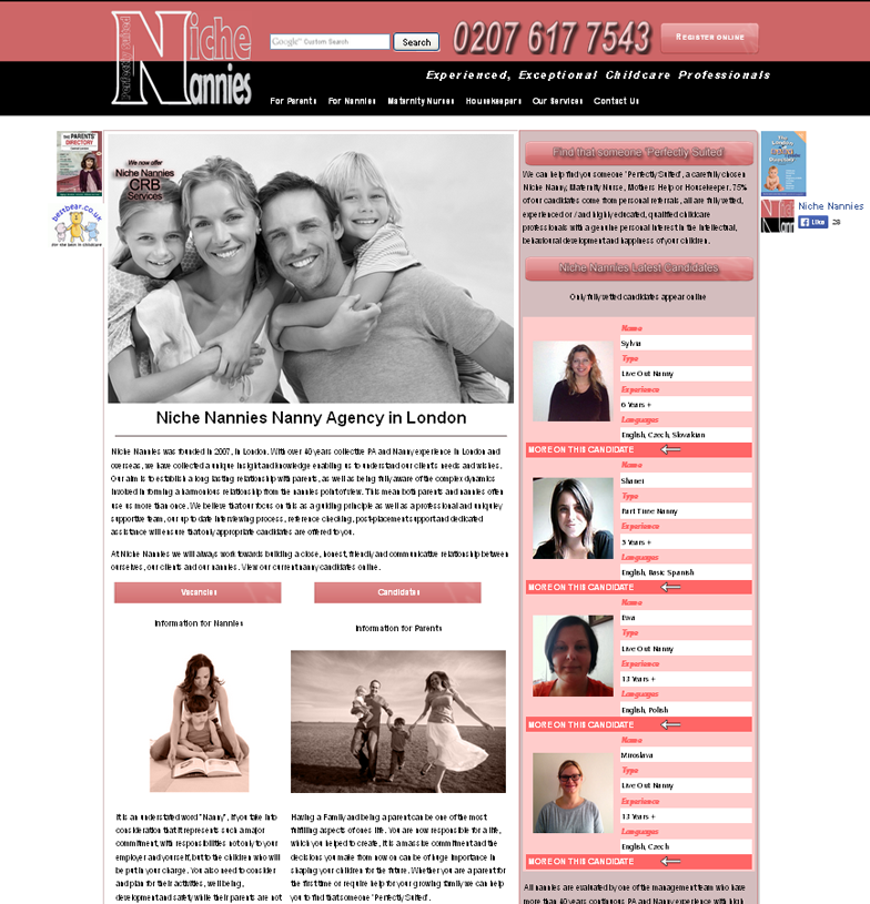 Nanny Agency and Recruitment Websites  Location - London, United KingdomPackage Result Delivery: 4 weeks- Strategy