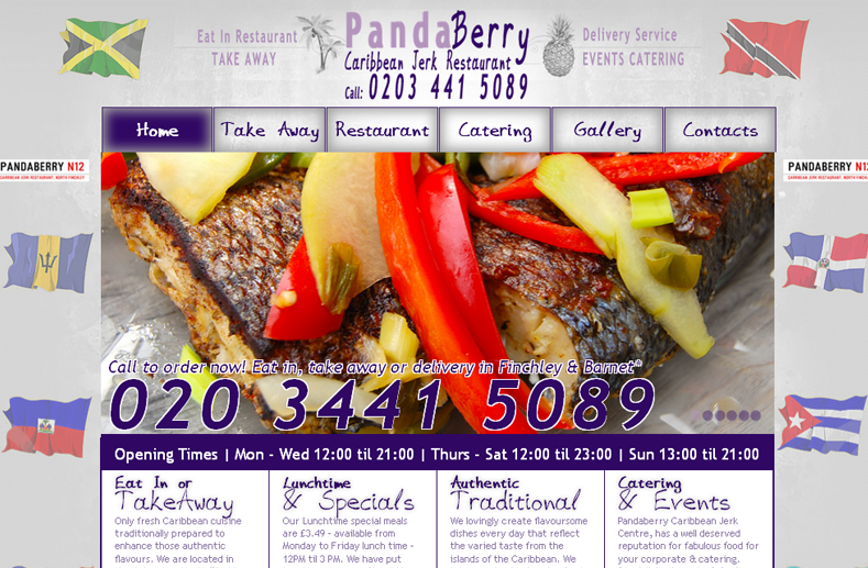 Restaurants and Catering Company website bespoke design and marketing for businesses & start upsPanda Berry West Indian Caribbean takeaway restaurant in North Finchley, Barnet,London required web prescence appealing to phone & tablet users and desktop users, to promote this 2 year old business.  Location - London, United KingdomPackage Result Delivery: 18 Days- Strategy